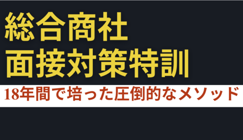 - 住友商事→シカゴMBA→ゴールドマンサックスIBDという世界最高峰のキャリアを持つ講師陣が、商社が本当に求めている「グローバル人材」の基準を直接指導!大学のキャリアセンターでは得られない本物のノウハウを伝授します。